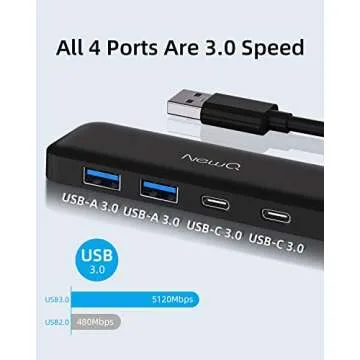 Show moreThe Dual USB C USB A 3.0 Hub is designed to meet the needs of modern users with high-speed data transfer capabilities and unmatched compatibility. Offering 4 USB 3.0 ports, including 2 USB C and 2 USB A connections, this ultra-slim portable USB splitter adapter ensures you can connect all your essential devices simultaneously without any hassle. With a lightning-fast transfer speed of 5Gbps, it is perfectly equipped to handle everything from external hard drives to gaming consoles like the PS4 and Xbox. Whether you need to transfer files or connect peripherals, this hub is the perfect solution for your laptop or desktop setup.
