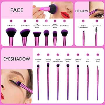 DUcare Makeup Brush Set Professional Makeup Brushes Premium Synthetic Kabuki Brush for Foundation Concealer Eye Lip Face Blending Cosmetic Kit 15Pcs (Pink)