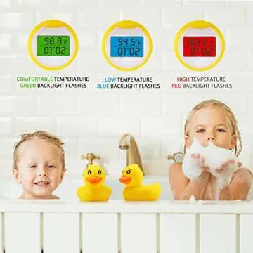 Show more Introducing the Duck Bath Thermometer, a delightful companion for your baby's bath time! This adorable rubber duck not only adds fun to your child's bathing ritual but also serves as an essential tool for ensuring bath time safety and comfort. Designed specifically for new parents, this playful yet functional thermometer alleviates any concerns over whether the water temperature is just right for your little one. With its intelligent features, you can finally say goodbye to worries over scalding hot or ice-cold water, making bath times a joyous experience!