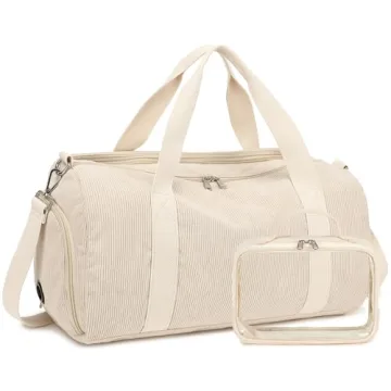 Duffle Bag for Gym Sports Women Girls Workout Travel Bag Weekender with Shoe Compartment and Wet Pocket (2-Corduroy-beige)