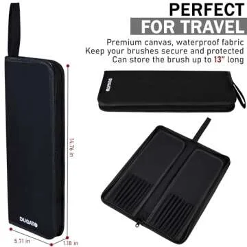 Show more DUGATO Long Canvas Paint Brush Holder is your ultimate solution for keeping your precious art brushes in pristine condition. Measuring at a generous 14.8 x 5.7 x 1.2 inches, this zippered brush case offers ample space for long handle brushes, accommodating lengths up to 13 inches. Crafted from premium, durable canvas, it not only protects your brushes but ensures they remain well-organized and easily accessible, whether for professional use or casual painting sessions.