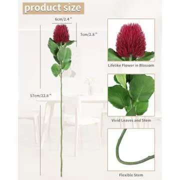 DuHouse Artificial Flower Banksia Plastic Decorative Flower Artificial Fake Flowers Bankwood for Home Kitchen Wedding Courtyard Decoration(Fuchsia)