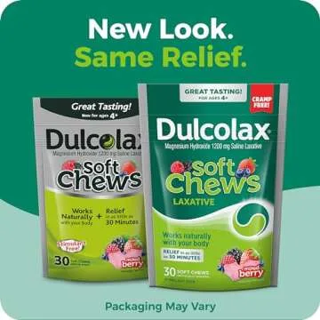 Dulcolax Saline Laxative Soft Chews, Fast-Acting Laxative, Gentle Constipation Relief, Mixed Berry Flavor, Magnesium Hydroxide 1200 mg, 30 Count, Occasional Constipation.