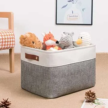 Show more Transform your space with the amazing fabric storage baskets from DULLEMELO. This set of 3 stylish and versatile baskets is designed to meet all your organizing needs, with each basket measuring 15(L) x 11(W) x 9.5(H) inches. Whether it's socks, toys, books, or baby clothes, these baskets will eliminate clutter and add a chic touch to any room. Constructed from premium quality linen and EVA, they are not only durable but their elegant look enhances your decor.