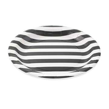 Dulousia Black Striped Paper Plates 72pcs - 9inch Round Party Plates for Dessert, Cakes, Fruits