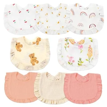 duludulu Muslin Baby Bibs for Baby Girls, Muslin Bibs Drool Bandana Bibs (Print white)