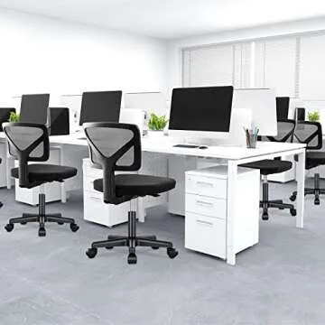 DUMOS Armless Desk Wheels Cute Home Office Chairs, Ergonomic Adjustable Swivel Rolling Task, Comfy Mesh Mid Back Computer Work Vanity Chair for Small Spaces, Classic Black