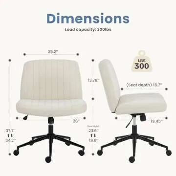 Designed for comfort and wider seating, the DUMOS Criss Cross Chair boasts an impressive 26-inch seat width and 18.7-inch seat depth. This generous space allows users to maintain a correct sitting posture and even sit cross-legged comfortably, catering to various sitting preferences. With a robust metal base supporting up to 300 lbs, it provides exceptional stability and support, ensuring you can focus on your tasks without worry.