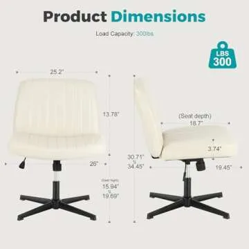 DUMOS Criss Cross Chairs, Armless Office Desk No Wheels Swivel Padded Wide Seat Modern Height Adjustable Mid Back Task Vanity Seating for Home Office Bedroom Computer