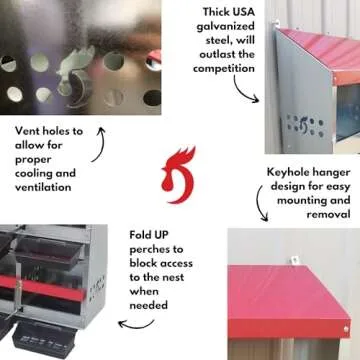Made from high-grade metal treated with a galvalume coating, these nesting boxes are built to withstand the elements. Unlike standard galvanized coatings, galvalume offers superior protection against rust, rain, and various weather conditions, guaranteeing years of service and reliability. The boxes are designed with ease of use in mind—equipped with keyhole hangers for straightforward mounting and removal for routine cleaning.