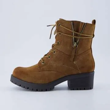 Dunes Women's Kobe Heeled Combat Lace Up Boot - Tan - Comfortable & Stylish