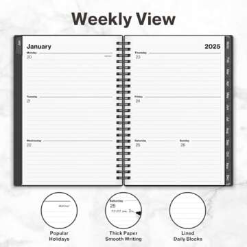 Dunwell Daily Planner Book 2025, Small 6x8" Weekly Planning Agenda, Includes Bookmark, Monthly Tabs, Stickers for Calendars, Protective Plastic Covers