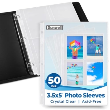 Show moreIntroduce yourself to the **Dunwell Photo Sleeves for 3-Ring Binder**, thoughtfully designed to cater to all your photo storage and organization needs. Each pack includes **50 archival-quality pages** that hold a total of **400 photos**, making it an ideal choice for anyone looking to safeguard their precious memories. Measuring **3.5x5 inches**, these photo pages feature **four pockets per sheet** that can easily accommodate **two pictures back-to-back**, offering a portrait display that’s both practical and visually appealing. The durable construction ensures that these sleeves are not only robust but also provide **crystal-clear visibility** of your photos, allowing you to enjoy your memories without the hindrance of glare.