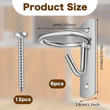 Each hook measures approximately 3.94 x 1.1 inches (10 x 2.8 cm), while the ring has a diameter of about 1.97 inches (5 cm), making them compatible with various bucket sizes. Whether you're seeking optimal organization for feed buckets or reliable bucket hanger solutions, you can count on the 6 Equestrian Bucket Hook to deliver quality and usability.