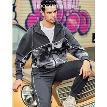 DUOFIER Men Activewear Camouflage Sweatshirt Full Zip Warm Hoodie Tracksuit Sports Set Casual Sweat Suit, Camo Gray-M