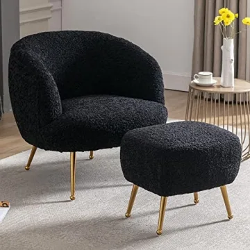 Show moreIntroducing the DUOMAY Modern Accent Chair with Ottoman, a perfect blend of style and comfort for your home or office. This contemporary barrel chair features a sophisticated Sherpa upholstered finish that not only catches the eye but offers an exceptionally cozy place to sit. Tailored for modern living spaces, its ergonomic design prioritizes your comfort with a well-padded seat and armrests that cradle you while you relax. The medium-high cushioned backrest supports your spine, keeping you aligned during your reading, working, or lounging moments.