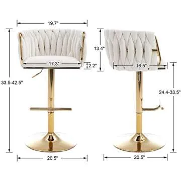DUOMAY Modern Swivel Bar Stools Set of 2, Velvet Adjustable Height Barstool with Barrel Back Kitchen Island Counter Bar Chair with Golden Base, White