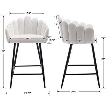 Show moreIntroducing the DUOMAY Modern White Bar Stools Set of 2, an essential addition to any contemporary space, designed to elevate your kitchen or bar area with a touch of elegance. These stools are not just ordinary seating options; they exhibit a striking modern style with their plush velvet upholstery and scalloped seashell edges that effortlessly blend comfort and sophistication. Crafted with a sturdy steel frame, these stools provide reliable support while showcasing a charming vertical channel tufting that adds a timeless quality to your décor. Perfectly suited for kitchen islands, bistros, or coffee shops, they redefine functionality with style.