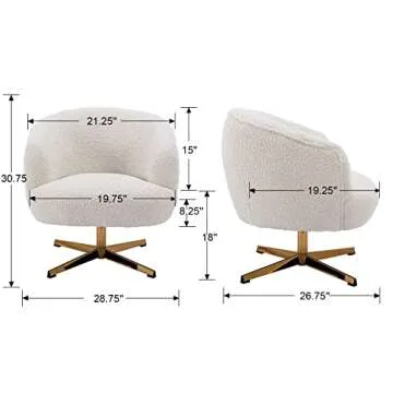 DUOMAY Swivel Accent Chair Armchair, Modern Faux Fur Round Barrel Chair with Gold Base for Living Room Bedroom Reading Room Office, White