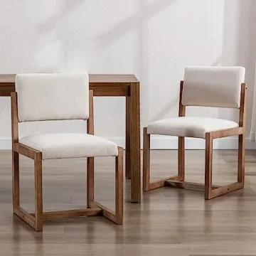 Show moreDUOMAY Upholstered Dining Chairs Set of 2 are the epitome of modern elegance, designed to elevate your dining experience. These chairs feature a stylish open back design that exudes sophistication while ensuring comfort and support for all your dining occasions. Upholstered in high-quality linen fabric, they provide a luxurious feel, complemented by a soft, padded seat and cushioned backrest. The solid wood frame not only boasts durability but also adds a rustic charm to any setting. Perfectly sized for any space, these chairs are versatile additions to your dining room, kitchen, or living area, where they create an inviting atmosphere for gatherings and everyday meals.
