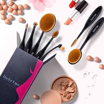 Show moreIntroducing the Duorime New 7pcs Black Oval Toothbrush Makeup Brush Set, an exquisite collection that promises to elevate your makeup application game to a professional level! Ideal for makeup enthusiasts at any skill level, this versatile set empowers you to master the art of makeup, whether you're aiming for a subtle everyday look or a glamorous evening transformation. Designed to perfection, these brushes are perfect for applying everything from primer, foundation, concealer, and powder to flawlessly perfecting your eyeliner, eyeshadow, lip color, blush, contour, highlight, bronzer, and setting powders.