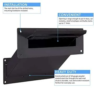 Durabox Through The Wall Mail Slot, Two Piece Deposit Chute Drop for Documents, Mail, Checks, Payments - Adjustable Mail Chute with Pre Drilled Mounting Holes, Screws D100 (Black)