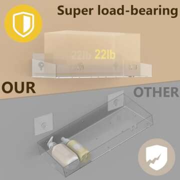 Show more Your soap finally has a stylish home with the stunning Durmmur Acrylic Clear Shower Organizer Set! This premium bathroom accessory set features two elegant acrylic shelves and a thoughtfully designed soap dish, perfect for neatly storing all your wash bottles and soaps. Not only does this organizer save valuable space, but it also adds a modern flair to your bathroom decor with its minimalist design. Each shelf is equipped with front hooks, ideal for hanging towels, bath sponges, or even jewelry, ensuring everything you need is within reach.