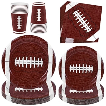 Durony 64 Pack Football Party Plates Napkins Cups Set for Game Day Celebrations