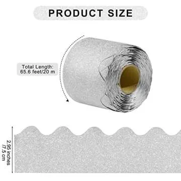 durony 65.6 Feet Bulletin Board Borders Glitter Borders Trim Scalloped Board Borders Decoration Borders for School Classroom Decoration (Silver)