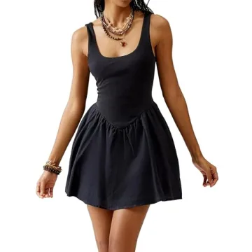 DURUNUL Women Drop Waist Mini Tank Dress Summer Casual Sleeveless Dresses Patchwork Scoop Neck Tank Top Flowy Short Dress Black, Small