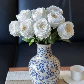 DUYONE White 4pcs Fake Flowers for Decoration Home Decor Real Touch Artificial Flowers Austin Rose Peony Latex Fake Flower Living Room Decoration Vivid Pink Roses Peonies