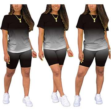DvaeMalligo Womens Biker Short Sets Solid Short Sleeve T-Shirts and Shorts Sports Yoga Suit Tracksuit Workout(Black,2XL)