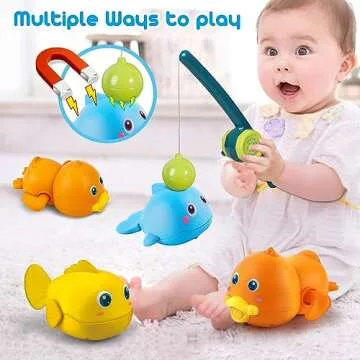 Show moreIntroducing the Dwi Dowellin Bath Toys for Toddlers, a delightful and innovative set designed for endless water fun and interactive learning. Perfect for transforming bath time into an exceptional playtime experience, these Magnetic Fishing Games come complete with a specially designed magnetic fishing rod and 4 charming wind-up swimming toys, including colorful ducks and whales. Each character floats gracefully on the water, enticing little ones to engage in joyful fishing adventures with magnets that make picking up sea creatures a breeze. The thoughtfully crafted fishing rod fits perfectly in toddlers' hands, making it easy for them to reel in their aquatic friends.