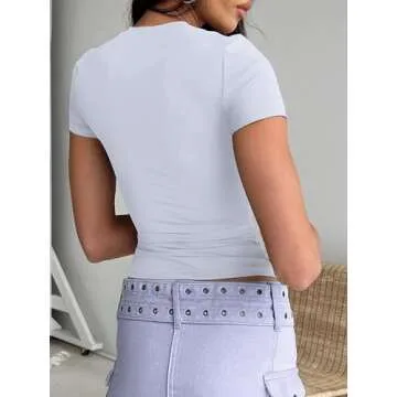 Dwnval Women Sexy Basic T Shirts Tops Spring Summer Short Sleeve Crewneck Slim Fit Cute Crop Top Blouses(White, S)