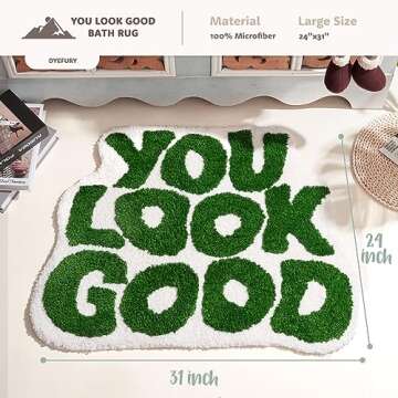 DyeFury ๐๐ฎ๐ฟ๐ด๐ฒ ๐ฎ๐ฐ" ๐ ๐ฏ๐ญ" You Look Good Bath Mat Green Cute Cool Bathroom Rug Fun Bathroom Mats Funny Funky Bathroom Decor Soft Microfiber Bath Rug, Trendy Green Bath Shower Mat