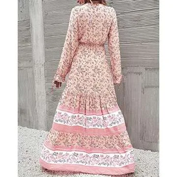 Show moreExperience the ultimate fusion of comfort and elegance with the Dyexces Women's Long Flared Sleeve Bohemian V Neck Maxi Dress. Perfectly designed for beach parties, casual outings, or any warm-weather occasion, this stunning dress features a breathtaking floral print that exudes femininity. The V-neckline flatters the neckline, while the long flared sleeves offer a whimsical, bohemian touch that sets you apart. Crafted from lightweight, breathable fabric, it ensures you stay cool and stylish all day long. The flowing silhouette allows for freedom of movement, making it your go-to piece for dance parties under the stars or relaxed afternoons at seaside retreats. Stand out in pink tones that complement any skin tone, allowing for easy accessorizing with hats and sandals for that perfect summer look.