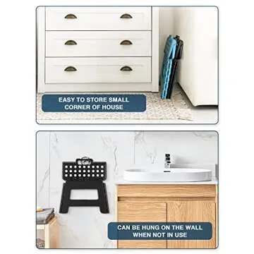 Dyforce Folding Step Stool 9", Kids Step Stool, Heavy Duty Step Stools for Adults, Compact Foot Stools, Light-Weight Toddler Step Stool for Kitchen, Bathroom, Holds Up to 300 lbs (Black)
