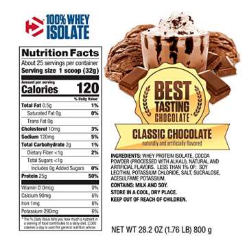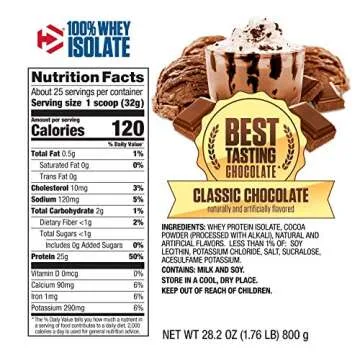 Dymatize 100% Whey Isolate Protein Powder, Fast Digestion & Absorption, Banned Substance Tested, Classic, 1.76 Pound, Chocolate, 27.2 Oz