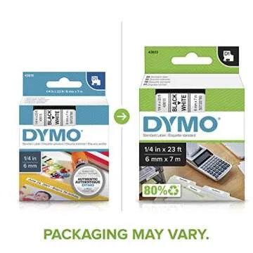 DYMO Standard D1 43613 Labels for LabelManager Label Makers, 1/4" W x 23' L, Black Print on White Tape, Self-Adhesive, 1 Cartridge