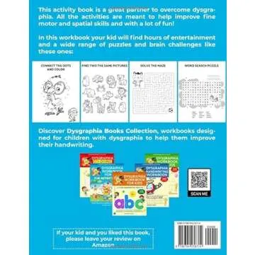 Introducing the Dysgraphia: Workbook for Kids – a vibrant and engaging activity book designed thoughtfully to support children facing challenges with writing and motor skills. Packed with a variety of fun and stimulating exercises, this workbook is tailored not just for kids with dysgraphia, but for any young learner looking to enhance their cognitive abilities while having fun. From mazes that sharpen logic, to spot-the-difference challenges, connect-the-dots,...