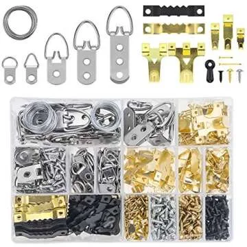Show moreIntroducing the DYWISHKEY Picture Hanging Kit, your one-stop solution for all your picture hanging needs! Packed with an impressive 815 pieces of heavy-duty assorted picture hangers, hooks, nails, and screws, this comprehensive kit is designed to make hanging artwork, photos, and decorations a breeze. The kit includes a variety of reliable, high-quality hanging solutions, such as 12 different styles of picture hangers, each made from durable materials to ensure long-lasting performance. From braided stainless steel cable to nickel-plated and brass-plated hooks, every component is crafted to provide maximum strength and reliability.