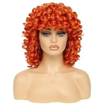 DZtineke 14 Inch Curly Wigs for Black Women Short Curly Wig with Bangs Big Loose Cute Kinky Curly Hair Synthetic Soft Wigs for Daily Party Cosplay (Ginger)