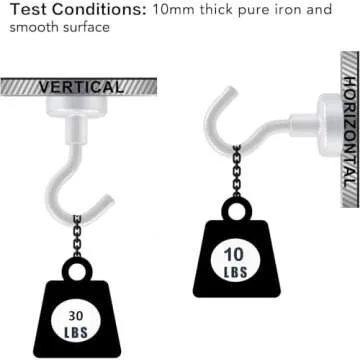 Show moreExperience the ultimate in strength and style with the E BAVITE Strong White Magnetic Hooks. This incredible set of 10 rare earth magnet hooks is perfect for any household or office space looking to enhance functionality without sacrificing aesthetics. Designed to support up to 30lbs, the E BAVITE hooks are perfect for a plethora of items, from kitchen utensils to office supplies. Crafted with colorful hooks that provide not only exceptional strength but also a delightful pop of color, these industrial-grade magnet hooks are built to last. Their impressive corrosion resistance means you can enjoy their benefits for years, even in humid environments! Less