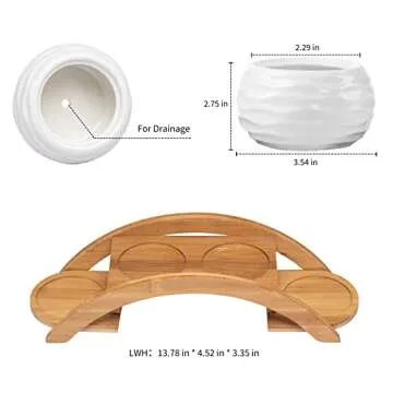 E-liu Succulent Pots and Stand Set, Ceramic White Succulent Planter Pot with Drainage, Pack of 4, Cute Office Garden Indoor Decoration, Plants Not Included