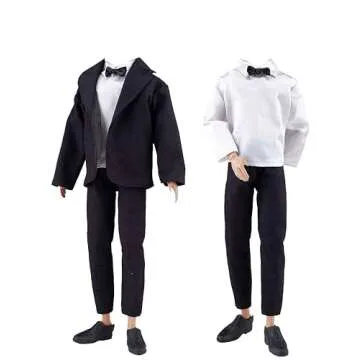 E-TING 10-Item Fantastic Pack = 1 Black-tie Suit with a Shirt + 3 Sets of Casual Wear Clothes Outfit + 1 pc Swim Trunks +5 Pairs Shoes for boy Doll Random Style