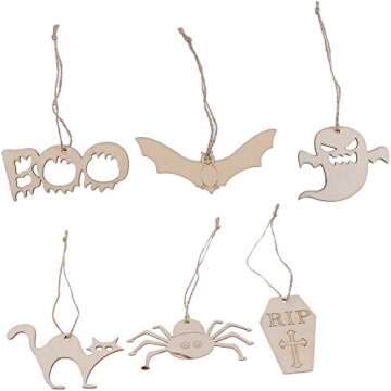 E-zoe 60 PCS Wooden Halloween Cutouts - Perfect for Kids' DIY Crafts