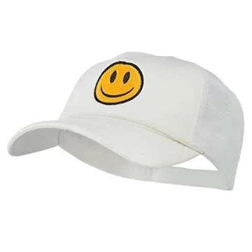 e4Hats.com Smile Face Embroidered Big Size Trucker Cap - White OSFM