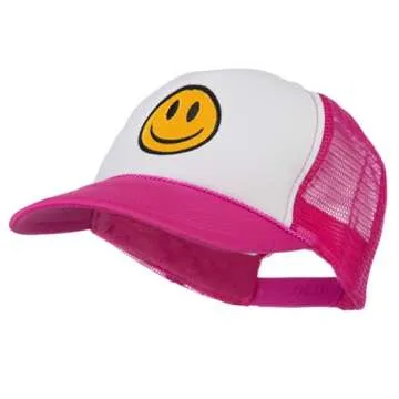 e4Hats.com Smile Face Embroidered Foam Mesh Back Cap - Hot Pink White OSFM