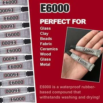 E6000 effectively bonds to glass, clay, beads, fabric, ceramics, wood, and metal.