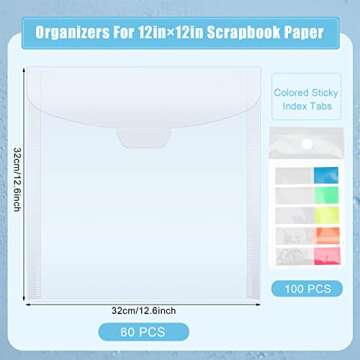 Show moreIntroducing the EAasty 80 Pcs Scrapbook Paper Storage Organizer, your ultimate solution for keeping your precious memories organized and safe! Designed with the avid crafter in mind, this set offers an impressive 80 individual top-loading files, each measuring a generous 12.6 x 12.6 inches, perfect for preserving scrapbook paper, cardstock, photos, and crafting materials. Made from high-quality, lightweight, and waterproof PP material, this organizer not only safeguards your items against spills and moisture but also provides durability that lasts. It's easy to clean, making maintenance a breeze, allowing you more time to get creative and store your memories instead of worrying about them.